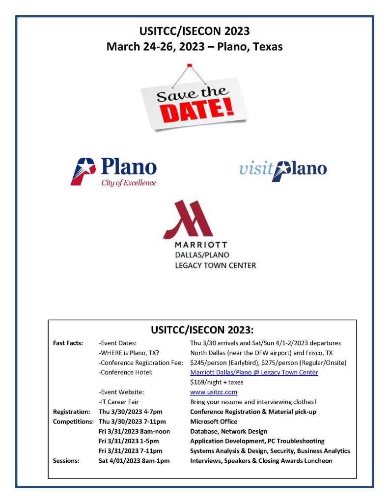 The U.S. Information Technology Collegiate Conference (USITCC) is intended to provide students who are studying information systems, information technology, and/or computer science (or closely-related disciplines) with an opportunity to showcase their skills, engage in IT-related competitions, and explore career opportunities.